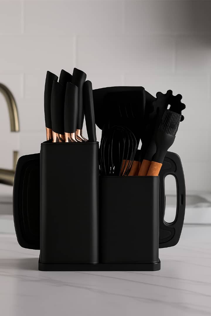 طقم سكاكين وادوات مطبح مع حاملة عصرية 1 د.ج
